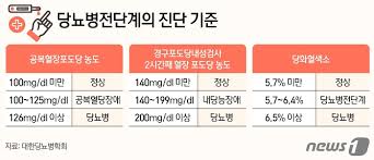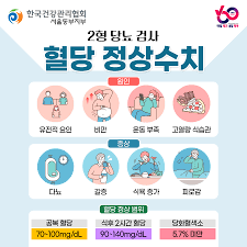 - 100–125 사이는 **당뇨 전단계**로, 126 이상 성인은 **당뇨 의심**.