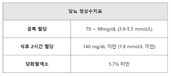 | 식후 2시간 | ≦140 | ADA 기준에서 정상 최대치 |