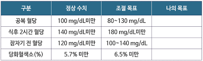 - 혈당 조절 목표 수립은 **의료진과 협의하여 설정**.
