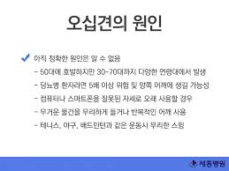 오십견 증상이 궁금하신가요? 오십견(유착성 관절낭염)은 어깨를 둘러싼 관절막이 염증으로 굳어 움직임이 제한되고 통증이 생기는 질환입니다. 이름처럼 50대에 많이 발생하지만 40~60대 누구에게나 생길 수 있어요. 초기-중기-후기로 나뉘어 증상이 진행되며 적절한 치료 시기를 놓치면 어깨 움직임이 영구적으로 제한될 수 있습니다. 오늘은 오십견 증상과 자가진단, 병원에 꼭 가야 할 상황까지 자세히 알려드립니다.