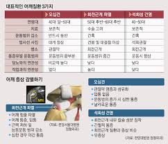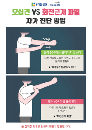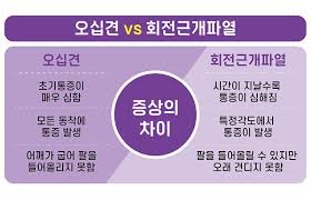 - 회전근개파열: 근력 저하, 특정 각도에서 심한 통증
