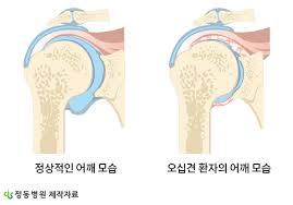- 팔이 빠지는 느낌, 근력 저하가 동반된 경우(회전근개파열 감별 필요)