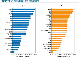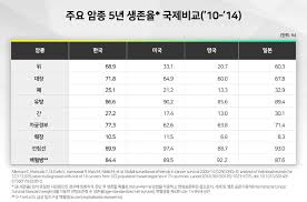 | 종류 | 5년 생존율(대한암등록통계 2022 기준) |