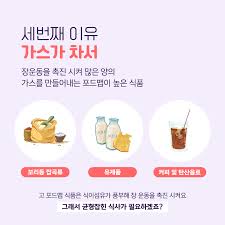 - 따뜻한 물이나 미지근한 차를 천천히 마셔 장운동 완화