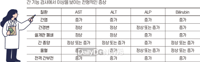 - ALP/GGT 상승≫ → **담도계 병변** 가능성 (담석, 담관염 등)