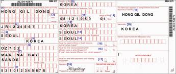 싱가포르 입국신고서 작성 방법